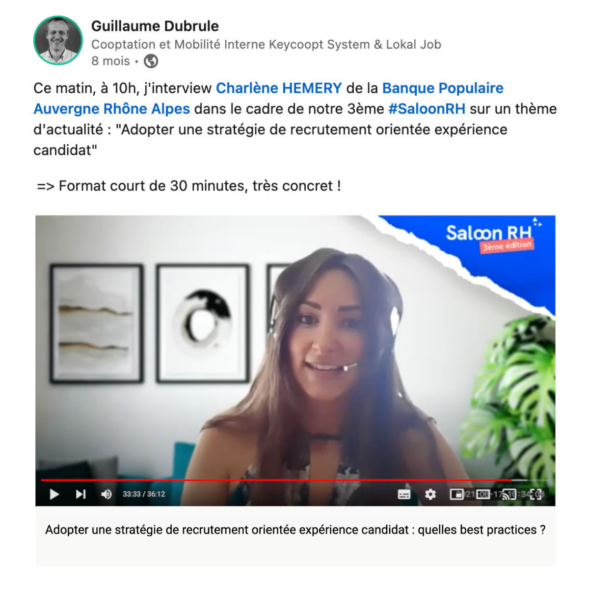 Salima KONE, Head of Talent Acquisition - PUBLICIS« Charlène nous a accompagné pour développer notre stratégie inbound et évangéliser la team TA de Publicis Media au personal branding.