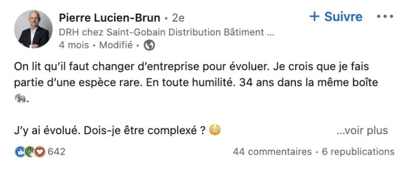Publier une offre d’emploi classique « Cher réseau » ou « Je recrute » est un contenu BOFU (Back of the funnel) : vous n’attirerez que quelques lecteurs en recherche très active, sur la fonction en question.