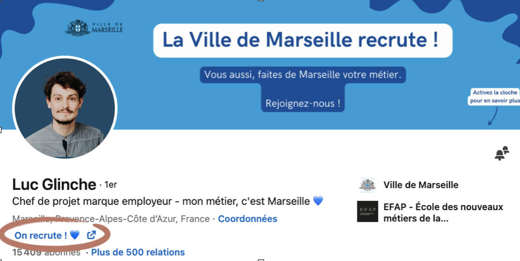 Par exemple, je n’indique pas “Talent Catcher” en début de mon titre de profil car ce n’est pas ce qui fera cliquer sur mon profil.