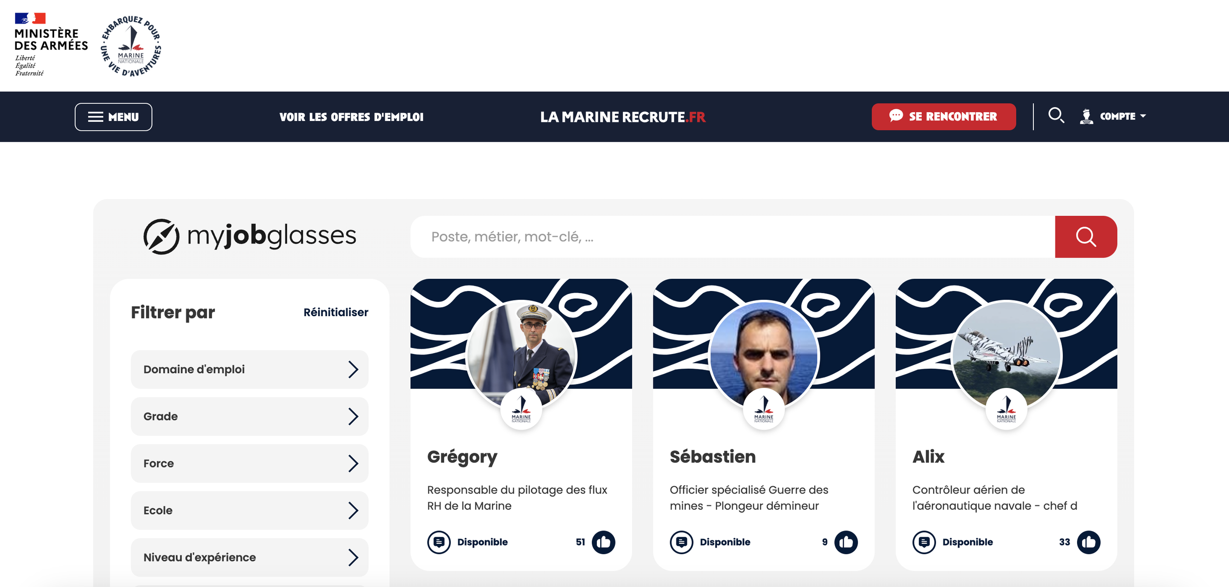 Par exemple, je m’interroge sur une carrière dans la Marine… suis-je faite pour ça ? Je peux échanger avec Grégory, Sébastien ou Alix afin de me faire une idée du métier.