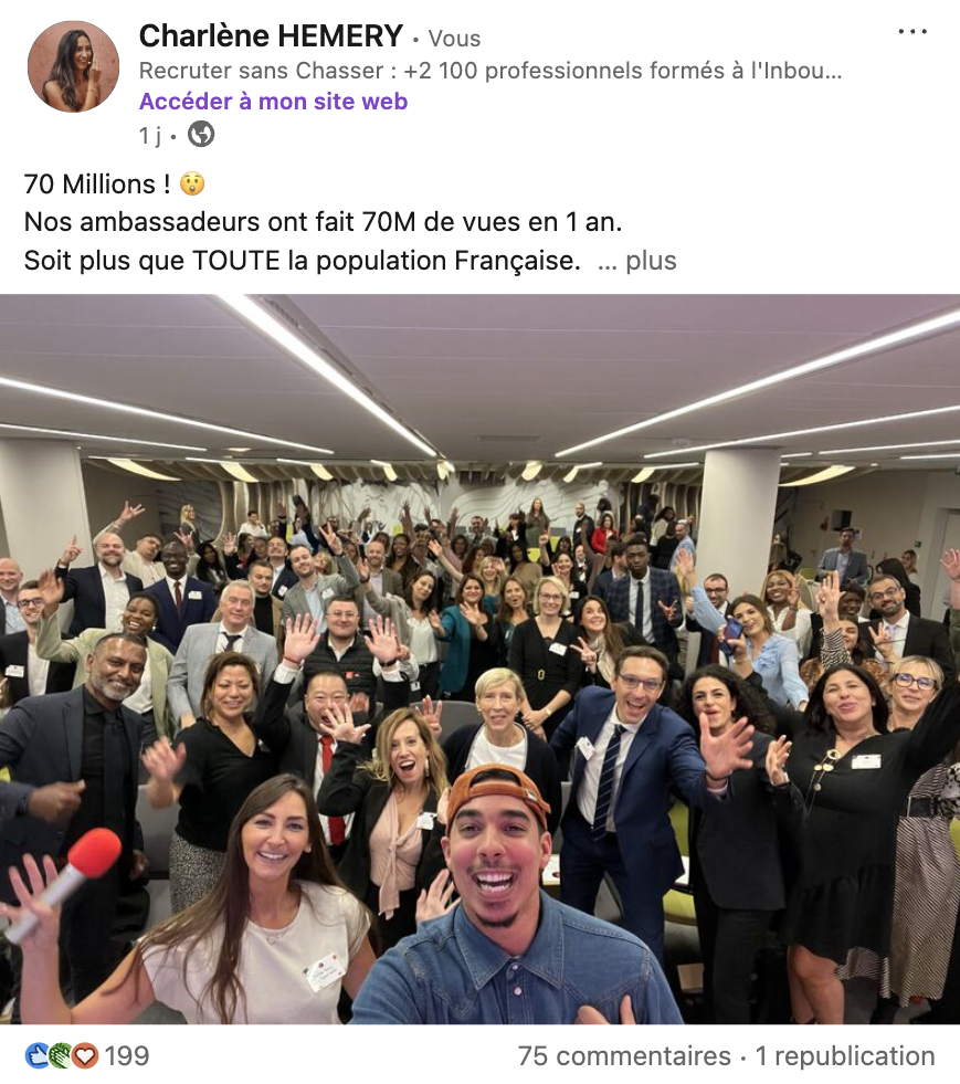 J’ai fait le compte ce mois-ci : 70 Millions de vues, en 12 mois, pour les Ambassadeurs de 9 de nos clients.