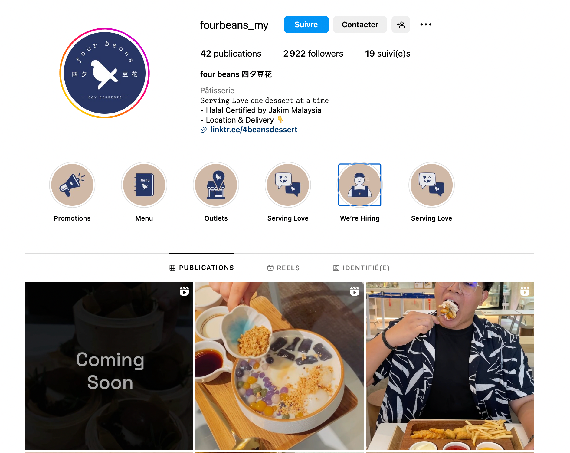 Mais cela ne sâarrĂȘte pas lĂ , comme Bella Goose, Four Beans consacre des contenus Instagram Ă lâĂ©quipe et au recrutement !