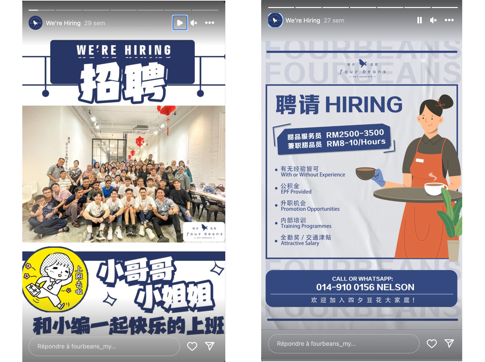 La transparence des salaires : mĂȘme si la fourchette est large car ils recrutent sur diffĂ©rents postes (caissier, serveur, pĂątissier, superviseur et manager), ils font lâeffort dâafficher le salaire. Ils prĂ©cisent Ă©galement le systĂšme dâĂ©pargne (obligatoire en Malaisie) fourni.
