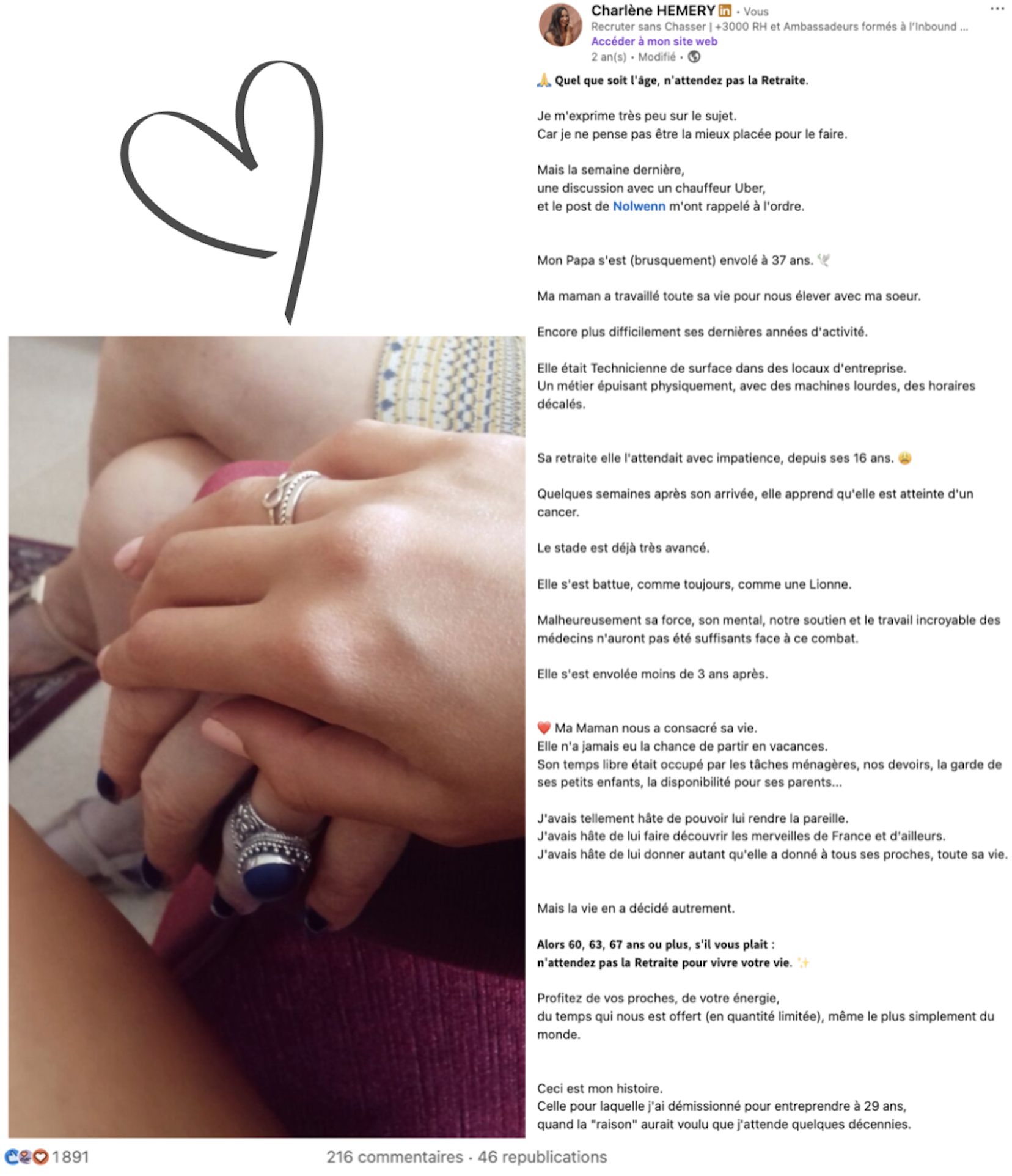 Câest authentique et Ă©motionnel. Je ne cache rien : ni lâattachement, ni la difficultĂ© de la dĂ©cision, ni lâexcitation du saut. Les gens aiment les vraies transitions de vie, pas les annonces corporate.