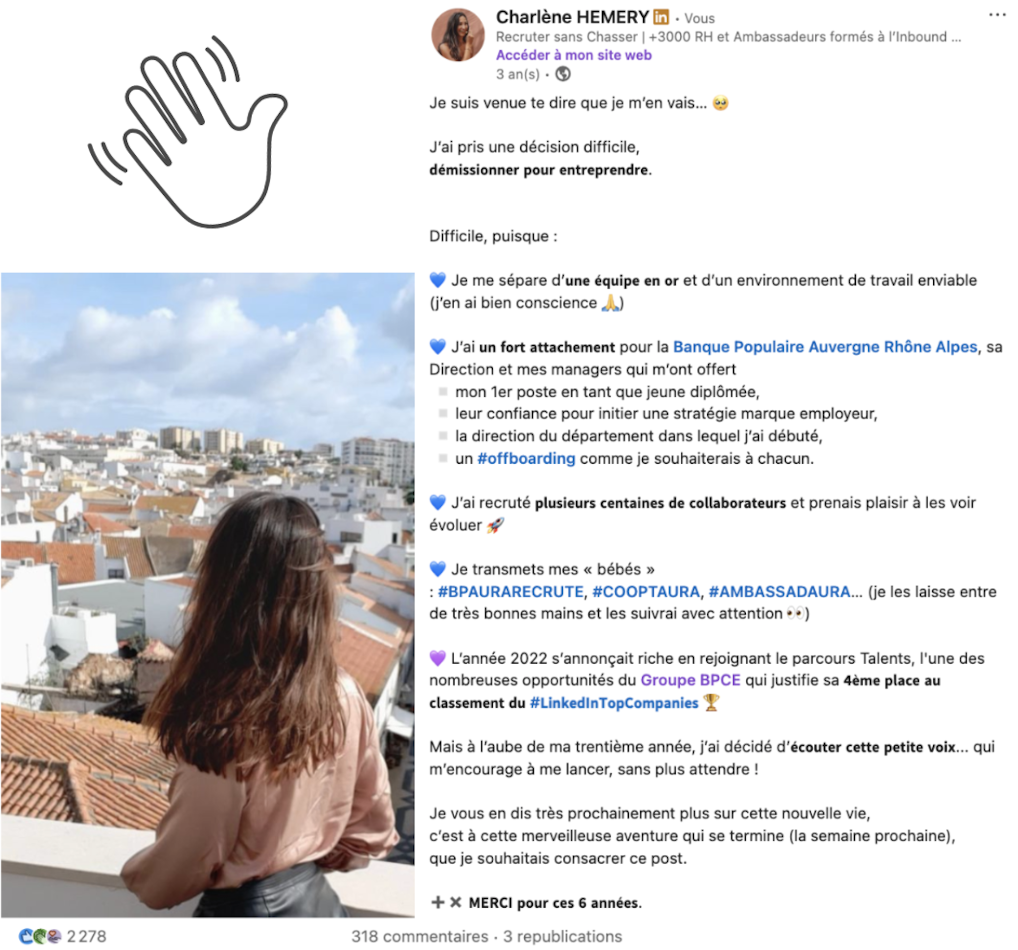 Câest un post dâĂ©volution professionnelle. Sur LinkedIn, ces posts gĂ©nĂšrent toujours beaucoup de commentaires. Que lâon vous connaisse, ou pas, on a envie de vous fĂ©liciter.