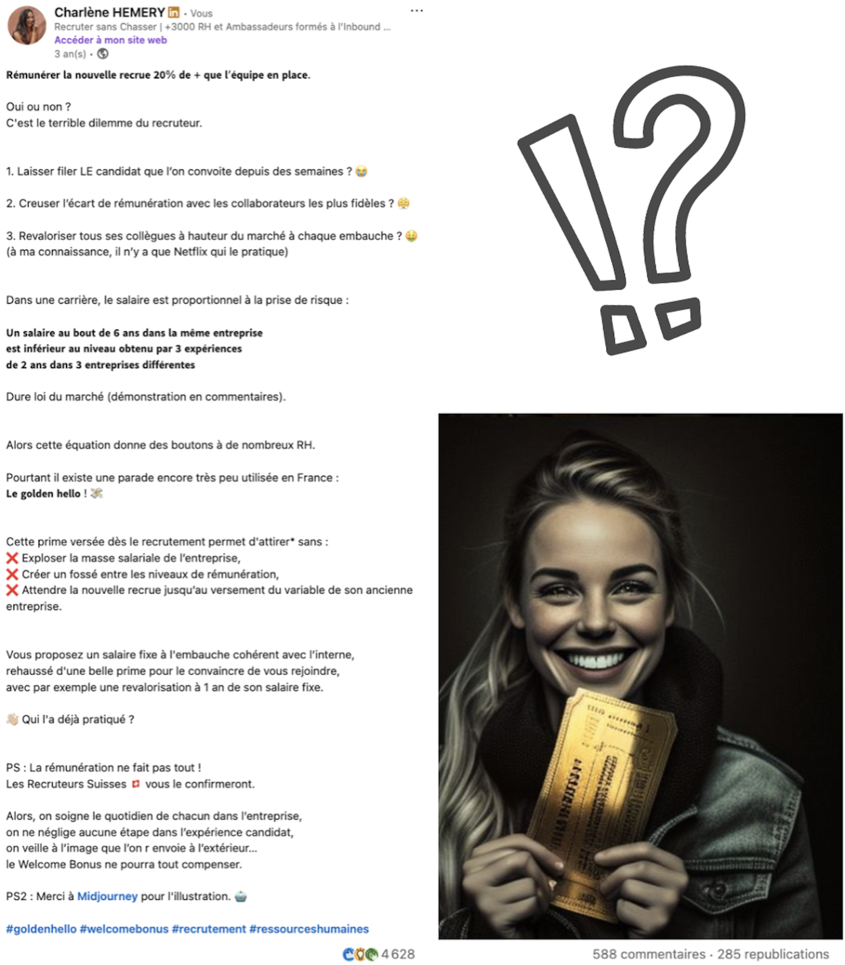 Il apporte une solution peu connue en France. Beaucoup découvrent le golden hello grùce à ce post. Résultat : sauvegarde, partage, commentaires pour taguer des collÚgues RH.