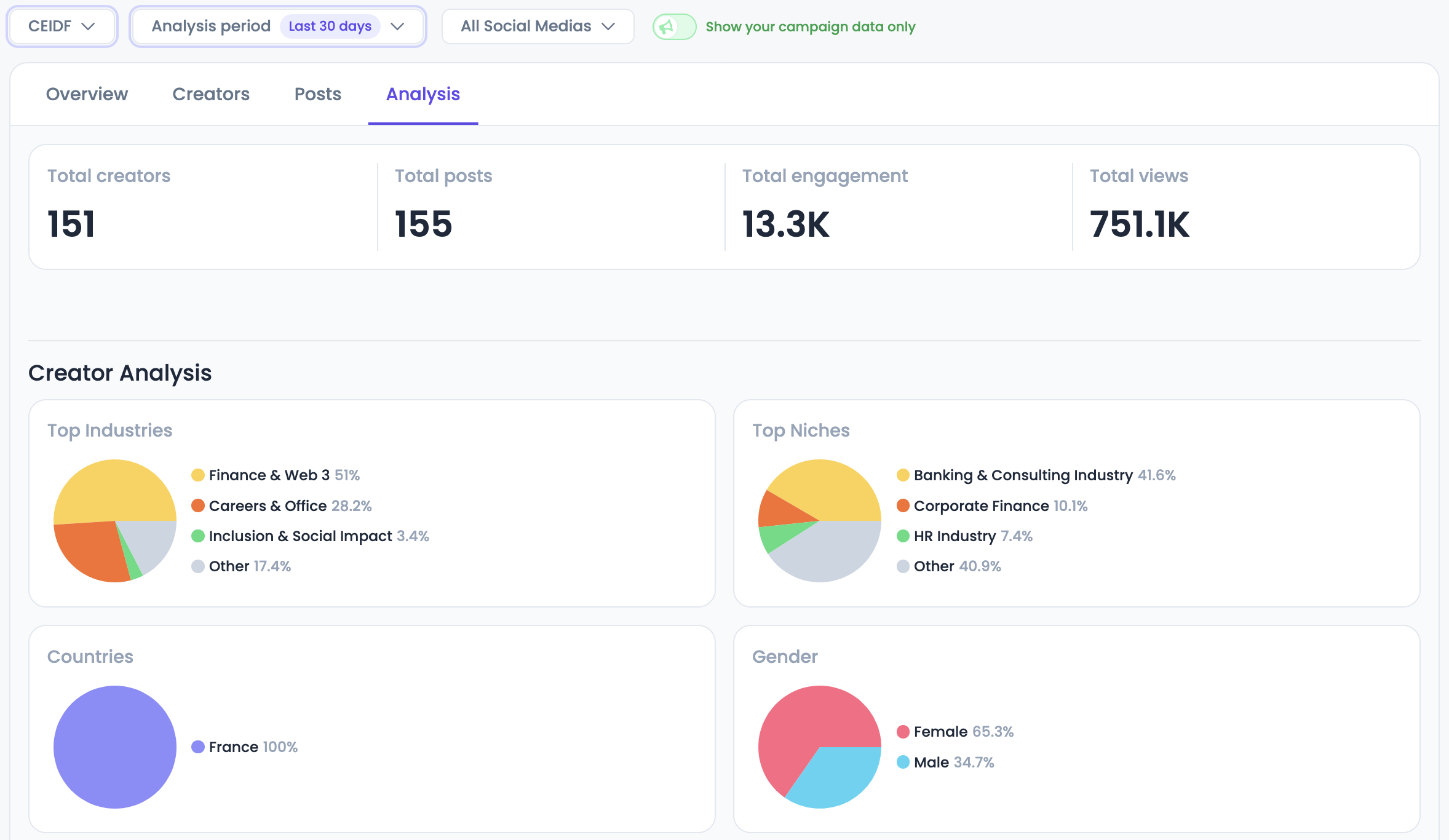 Heureusement Favikon Business est arrivé ! Initialement, avec un objectif d’Influence, pour permettre aux marques d’identifier les créateurs en parfaite adéquation avec leurs valeurs et leurs objectifs de campagne. 🚀