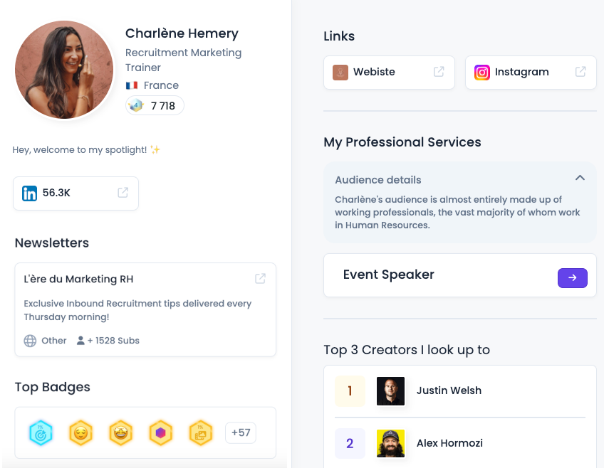 🔗 Depuis peu, vous avez même un genre de Linktr.ee qui permet de centraliser tous vos réseaux et canaux sur une seule page accessible via un lien unique.