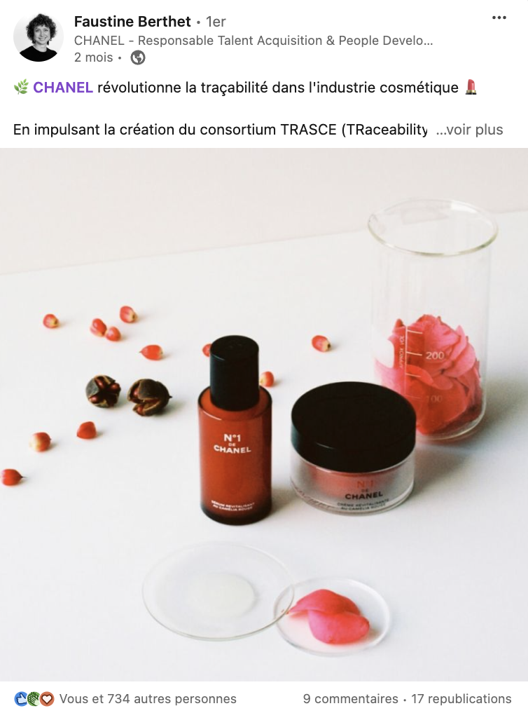 Brillant exemple avec Faustine qui partage l’innovation à laquelle CHANEL a contribué.