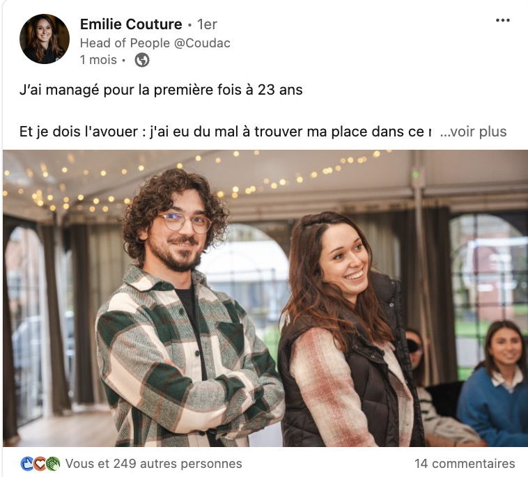 J’adore l’exemple d’Emilie, qui permet à tous les alternants actuels et futurs de Coudac de s’identifier à elle : devenue Manager à 23 ans puis DRH à 25 ans.