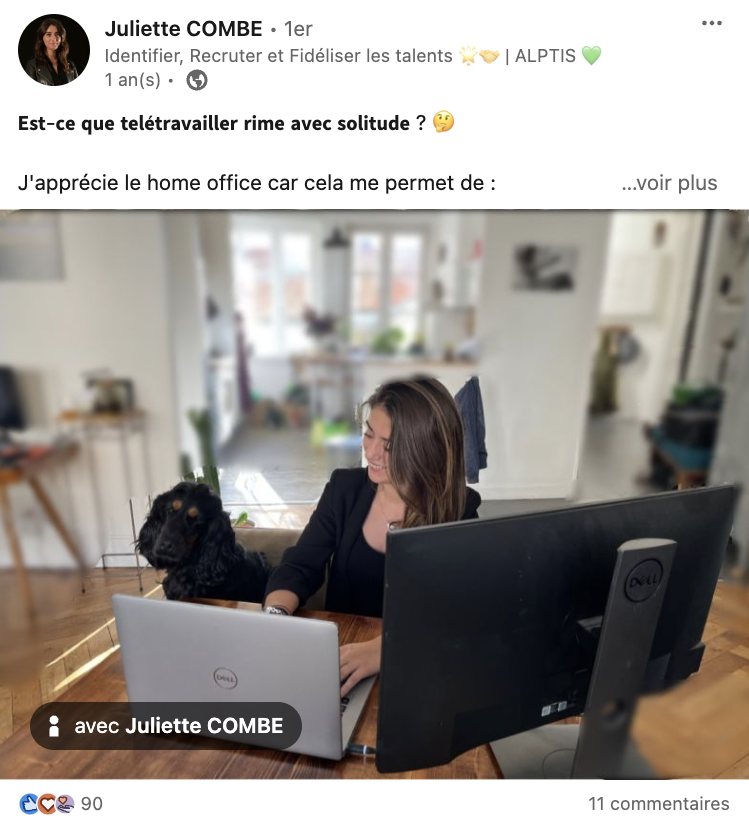Par exemple, Juliette qui partage son setup (et son compagnon) de télétravail :