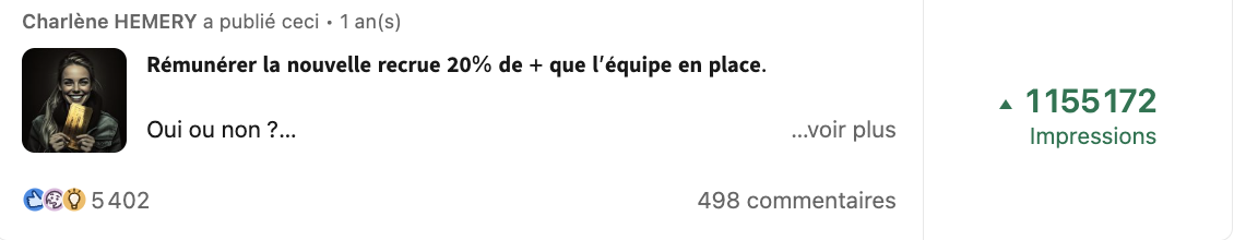 Le sujet du salaire étant brûlant : ma publication a très certainement empêché certains de commenter, pourtant bien captivés par la lecture du message.