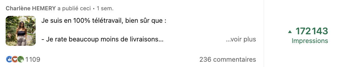 La tonalité est très authenthique (comme ma tête 🙈) : les lecteurs LinkedIn adorent vous lire comme ils vous connaissent