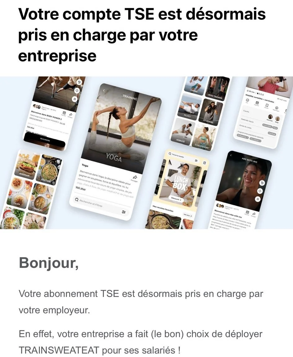 ⭐ Trainsweateat Pro est donc LA solution clé en main, accessible aux entreprises de toutes tailles, pour apporter une réponse Sport & Bien-être à leurs collaborateurs.
