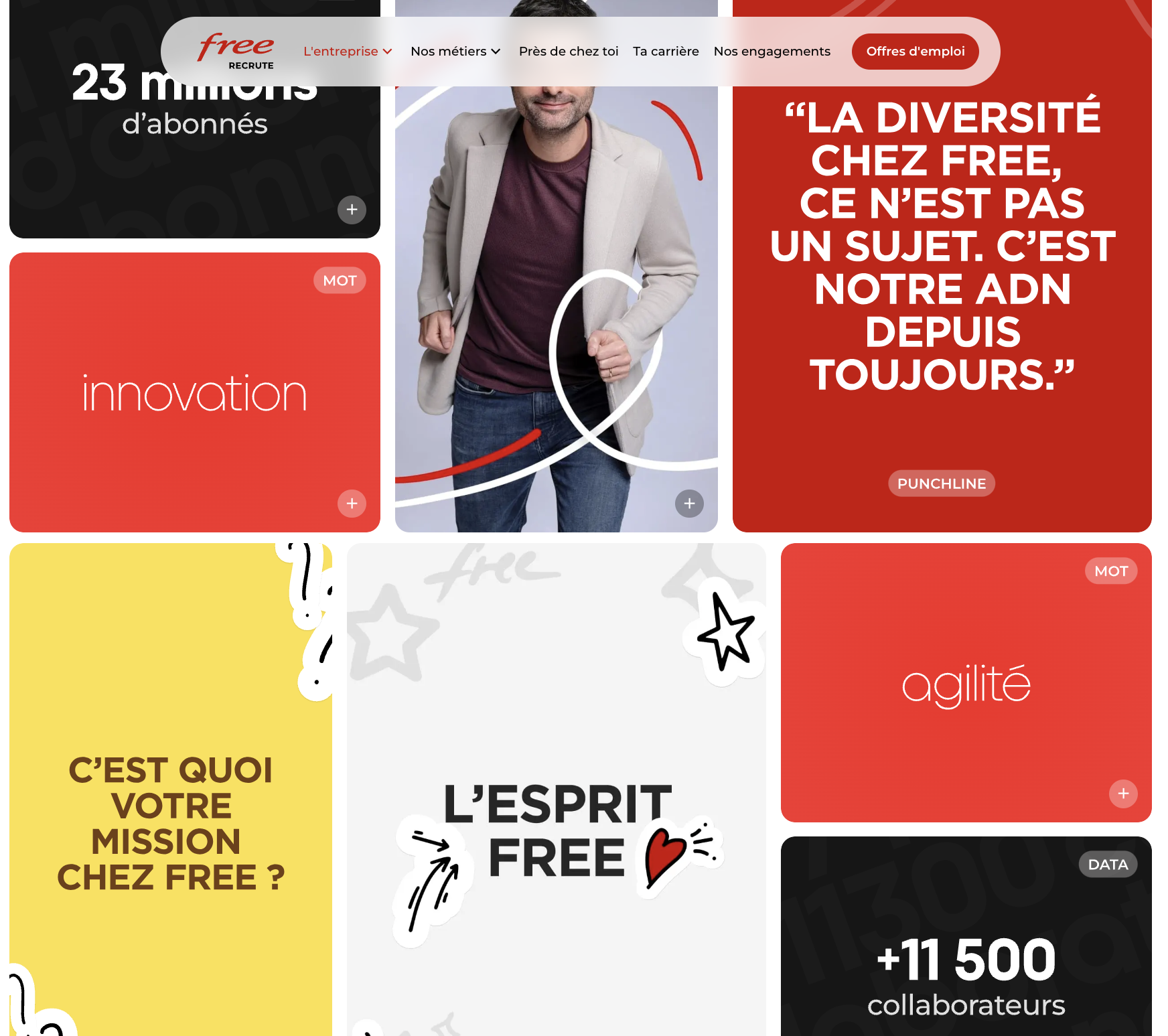 En plus des contenus (éphémères) sur les réseaux sociaux, Free mise sur la durabilité avec une plateforme de marque dédiée au Recrutement.